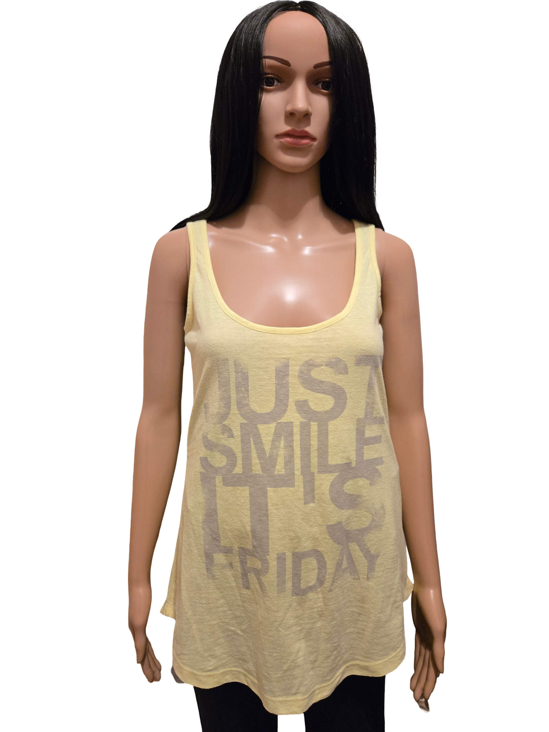 Débardeur jaune léger avec inscription tendance, parfait pour un look décontracté et stylé ✨