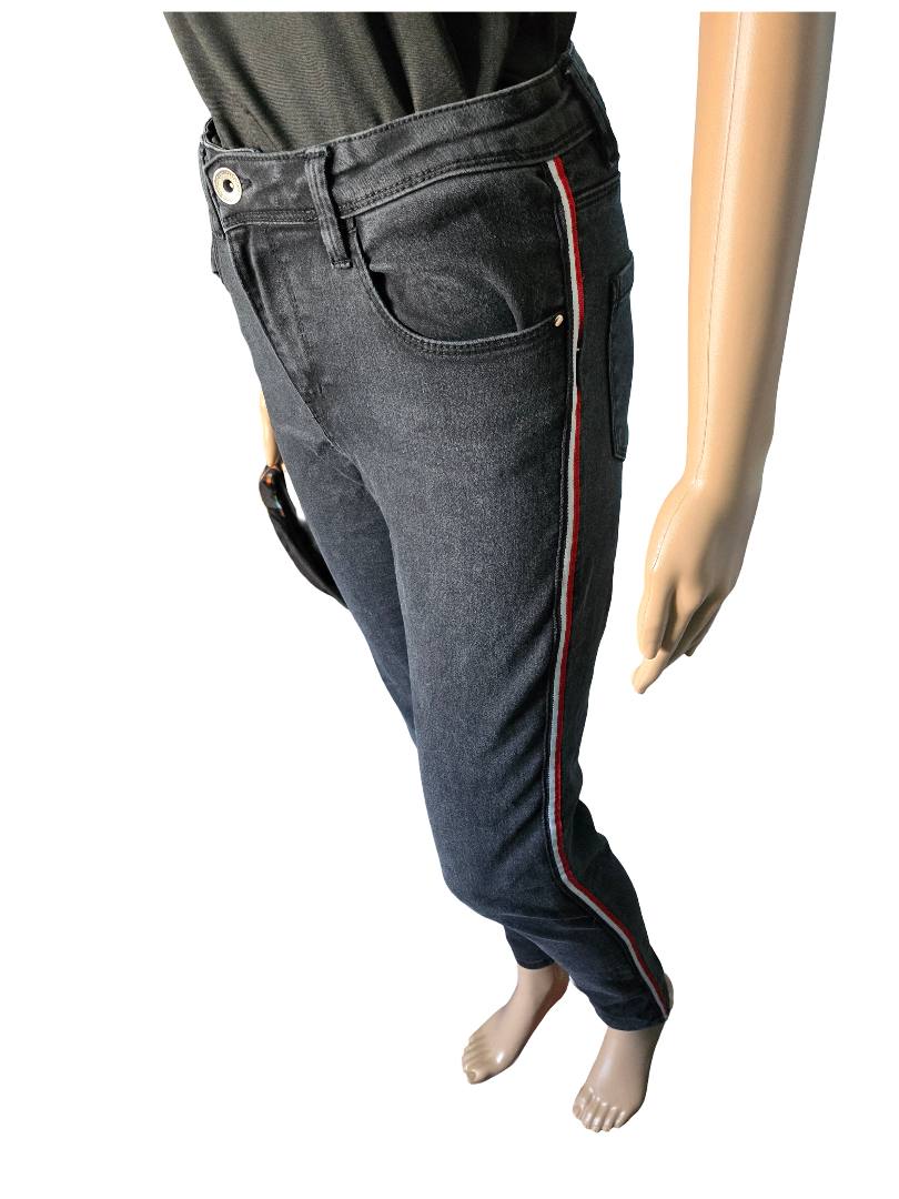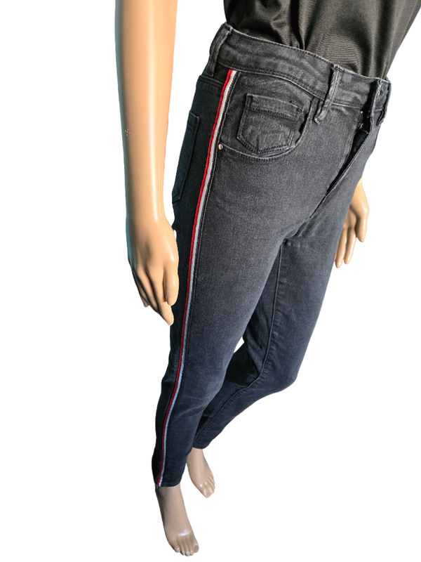 Jean slim noir confortable avec bandes latérales contrastées qui apportent une touche tendance et stylée 🔥